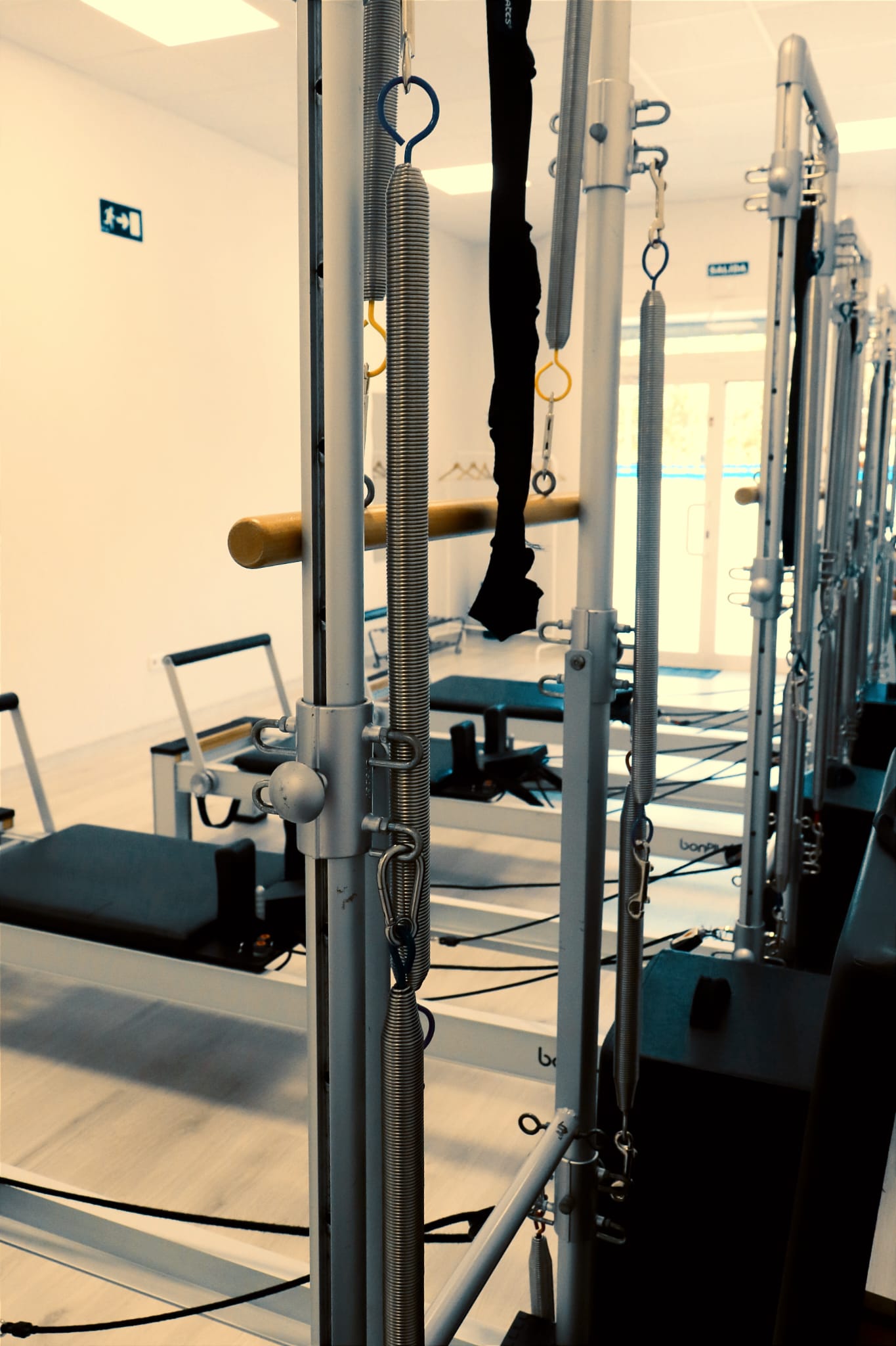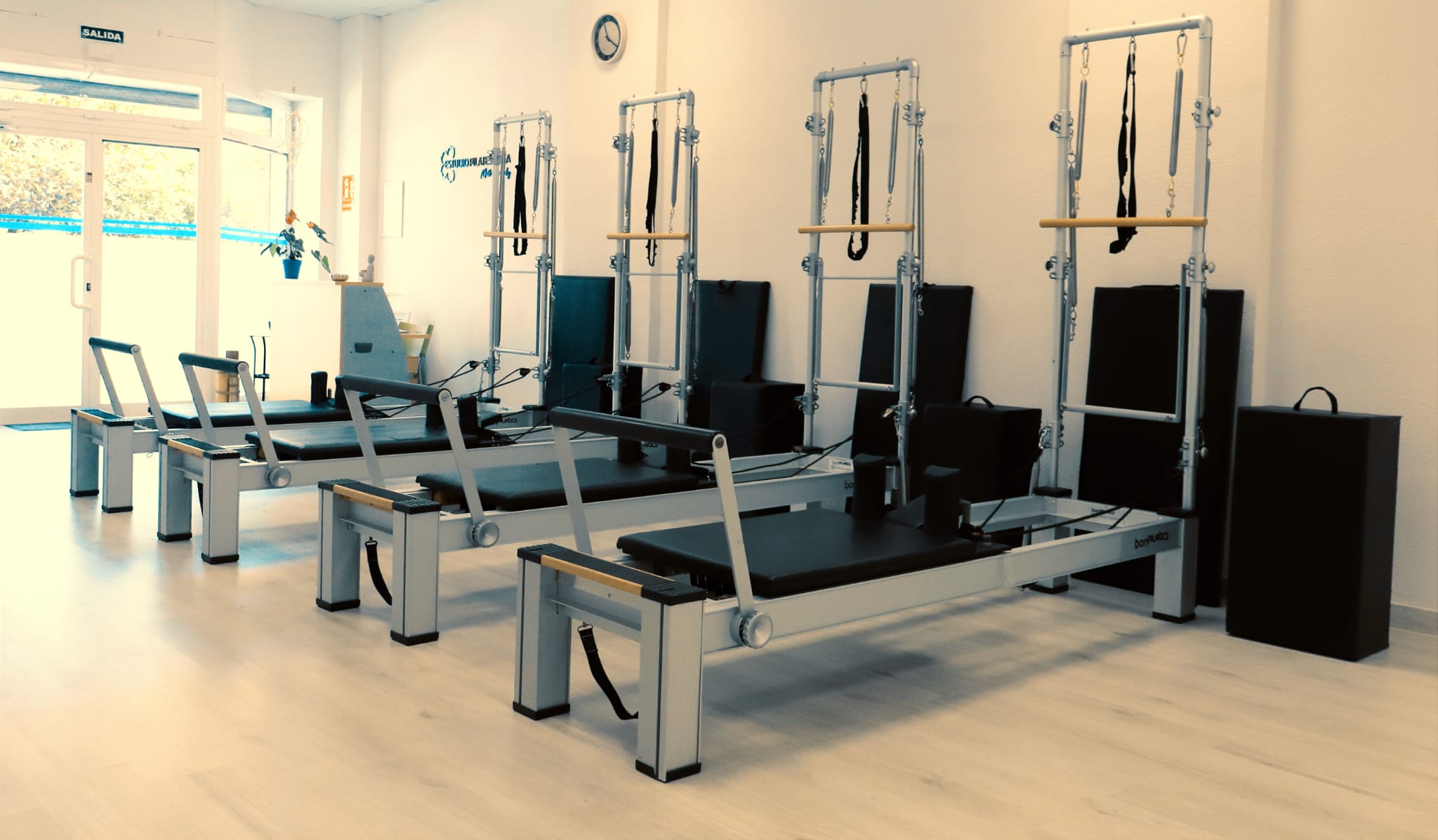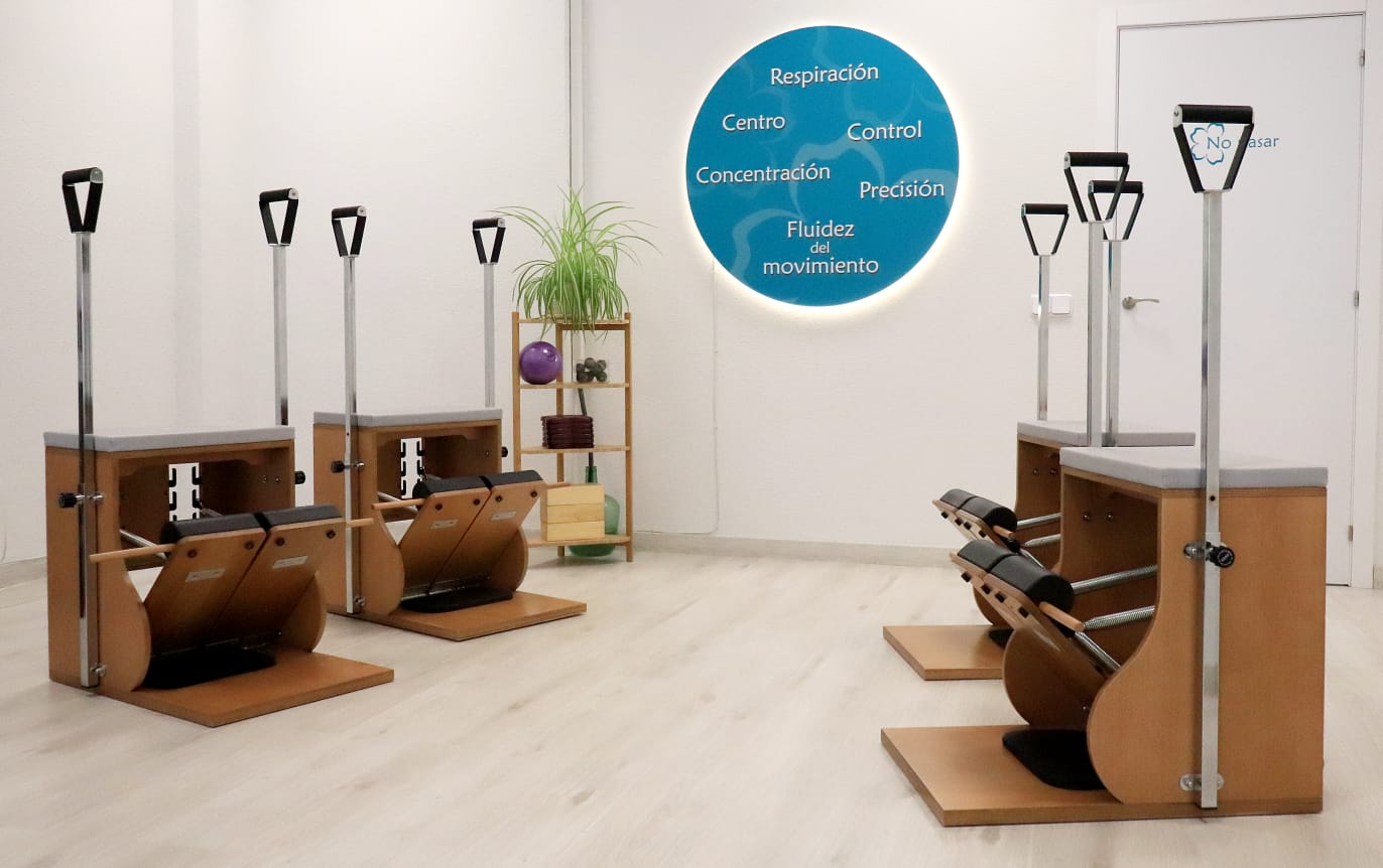Una sala exclusiva para Pilates Máquinas; Reformer, Torre, Wunda chair (Silla). Y otra sala diáfana para la práctica de Pilates Suelo, Yoga, Talleres, etc.